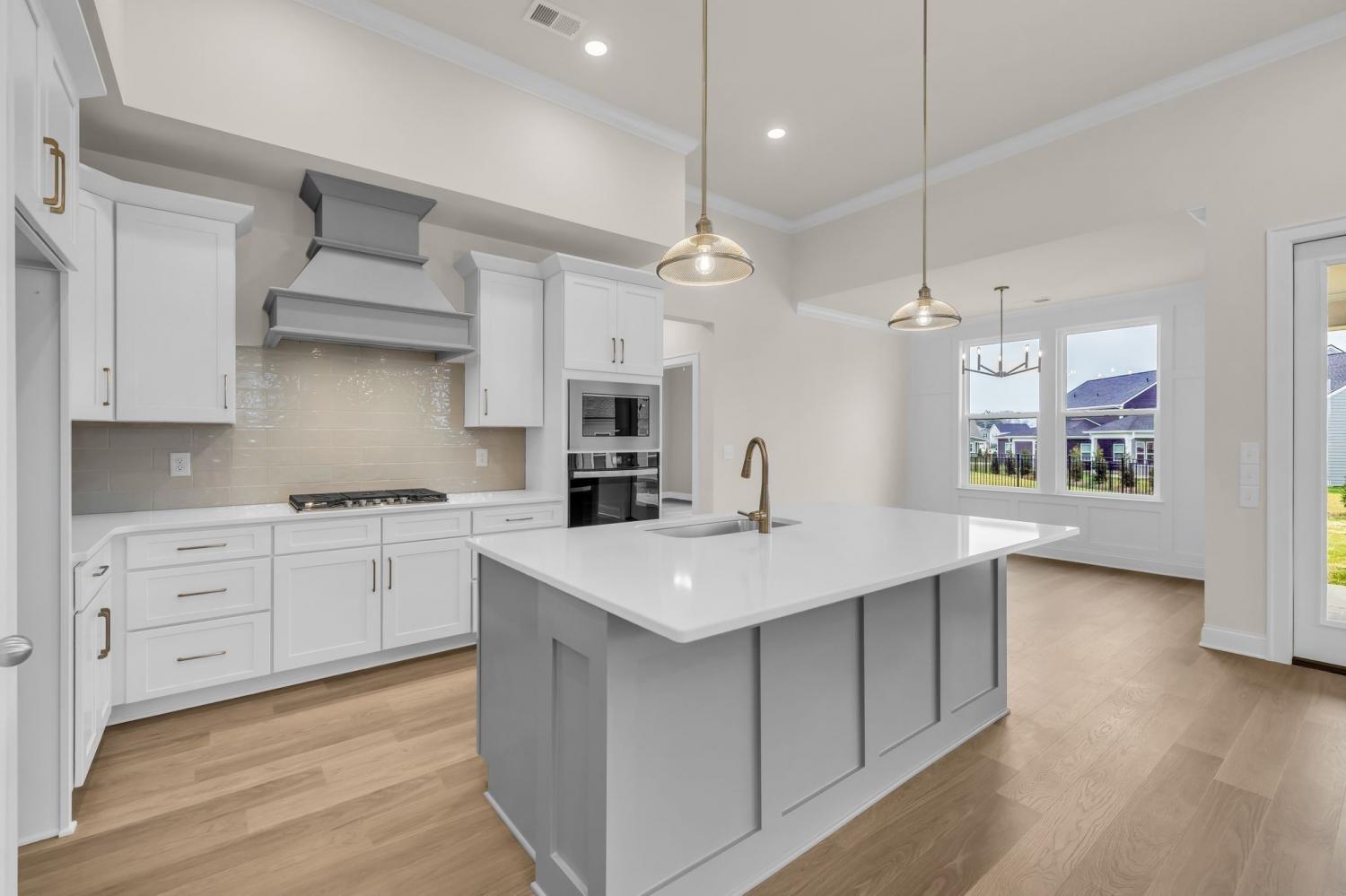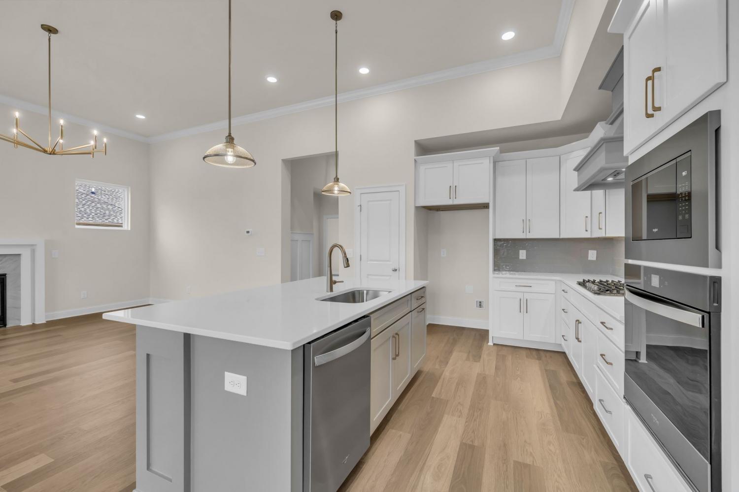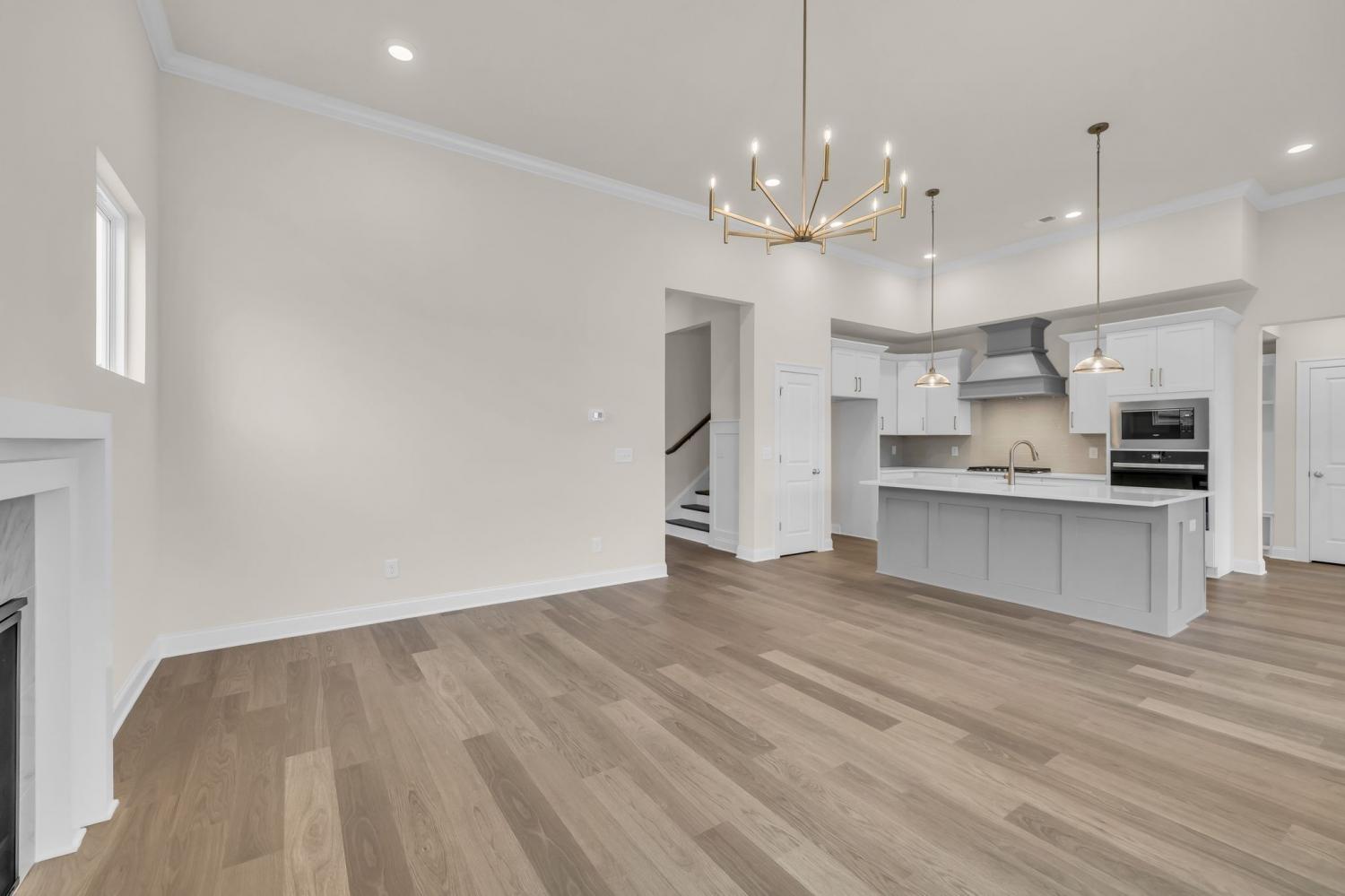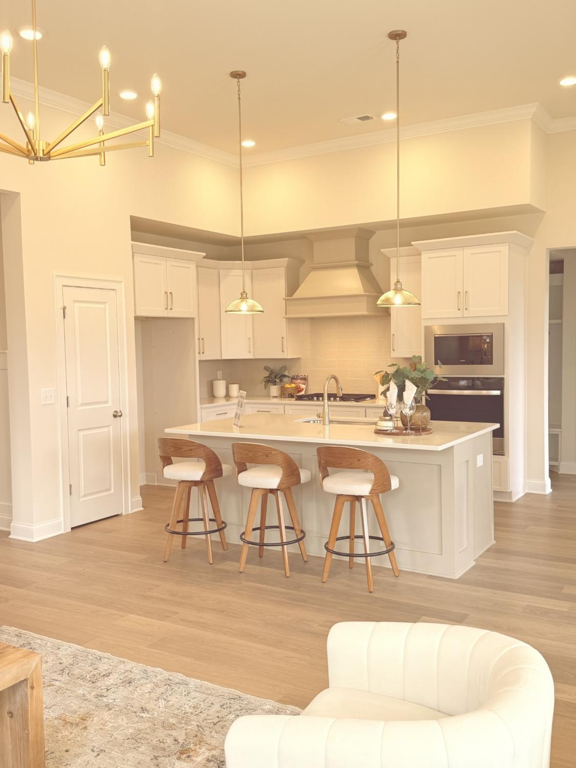 Popular Hadley plan with 2-car garage. Features 3 bedrooms on the main floor and a 4th bedroom, full bath, and bonus room upstairs. Enjoy 11' ceilings in the kitchen, great room, and foyer, creating an open, airy feel. The chef’s kitchen includes a wall oven and microwave, gas cooktop, and large island — perfect for entertaining. The primary suite on the first floor offers huge windows, a spacious shower, and a garden tub. Relax on the covered outdoor patio and enjoy this home loaded with upgrades and designer finishes throughout. Built with quality and style. Ready Now.