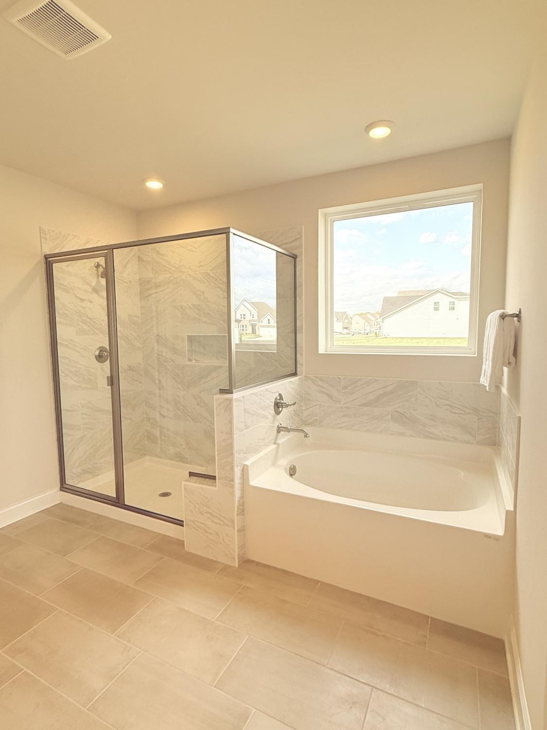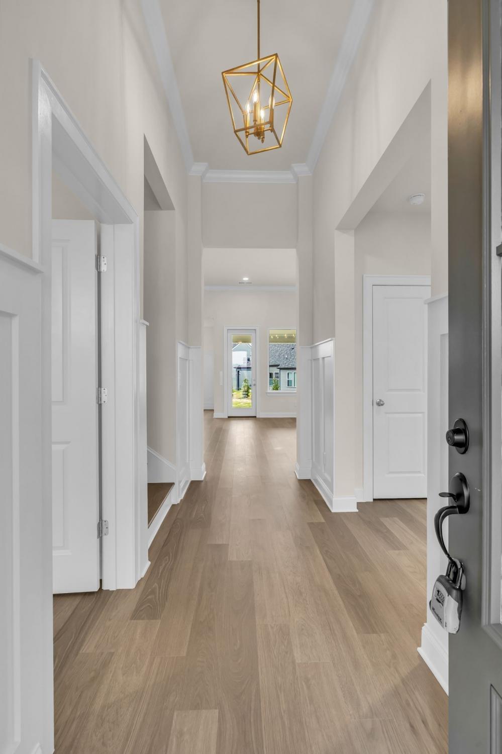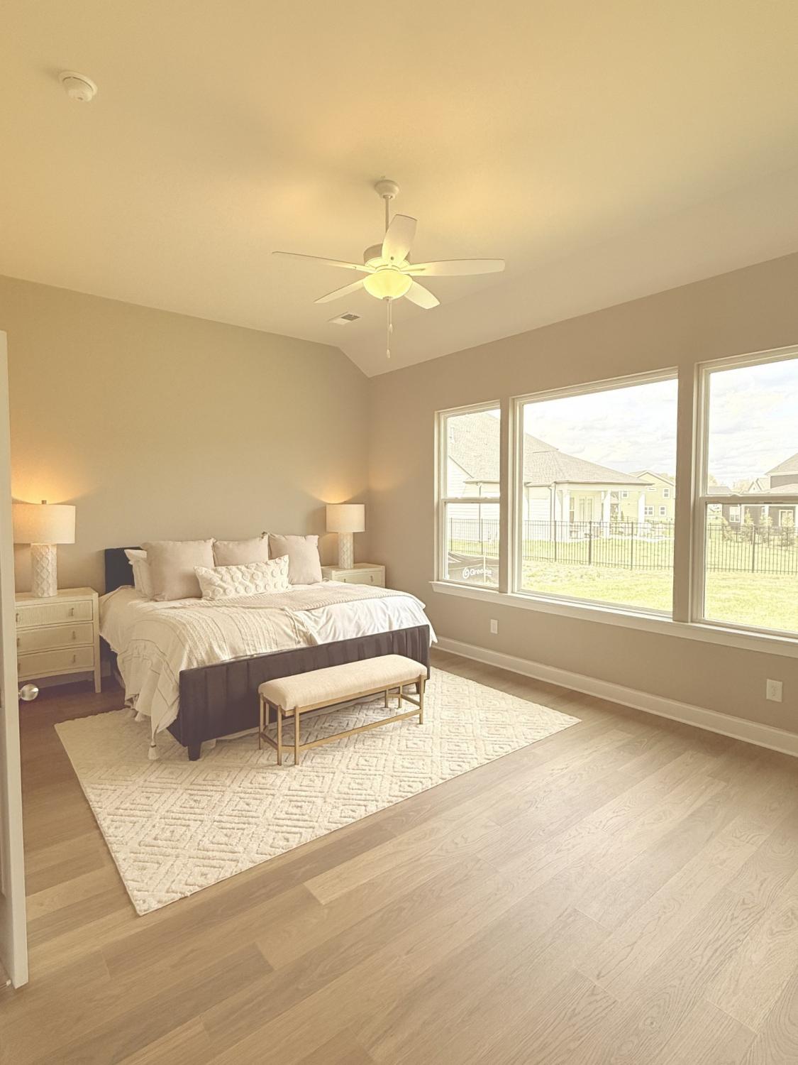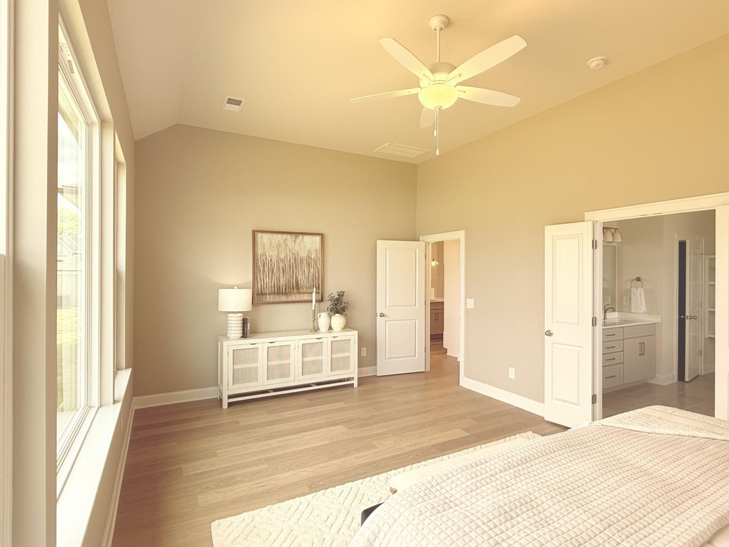 Popular Hadley plan with 2-car garage. Features 3 bedrooms on the main floor and a 4th bedroom, full bath, and bonus room upstairs. Enjoy 11' ceilings in the kitchen, great room, and foyer, creating an open, airy feel. The chef’s kitchen includes a wall oven and microwave, gas cooktop, and large island — perfect for entertaining. The primary suite on the first floor offers huge windows, a spacious shower, and a garden tub. Relax on the covered outdoor patio and enjoy this home loaded with upgrades and designer finishes throughout. Built with quality and style. Ready Now.